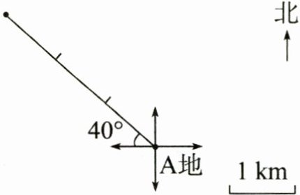 第一步:从$A$地出发,根据西偏北$40^{\circ}$方向,量出$40^{\circ}$角,按照$3$厘米(因为$3÷1 = 3$厘米)的长度画出第一段路线。