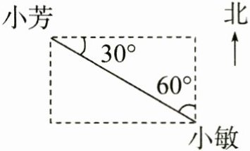 (2)如图,小芳不动,小敏朝( )方向走能遇到小芳。