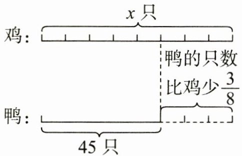 (1)$(1-\frac{3}{8})x=45$ $x=72$