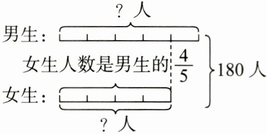 2. 某市科技馆为该市中小学生带来了一场精彩的太空科普直播课。实验小学六年级学生共180人观看了直播。请你根据如图所示的线段图中的信息,求出实验小学六年级学生观看直播的男生和女生各有多少人。