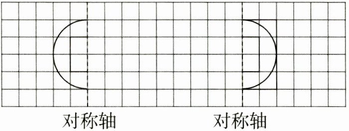 根据对称轴,以对称轴为基准,按照左侧图形的形状,在右侧对应位置准确画出相同形状的图形部分,使对称轴两侧图形完全对称,画出后的图形如下: