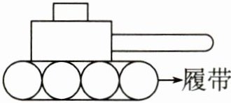 (4)一辆玩具坦克车(如图)由一根履带围着四个半径是 $ 1 \mathrm{~cm} $ 的轮子前进,这辆玩具坦克车履带的长度是(