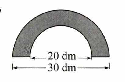 (2)3.14×[(30÷2)²−(20÷2)²]÷2=196.25(dm²)