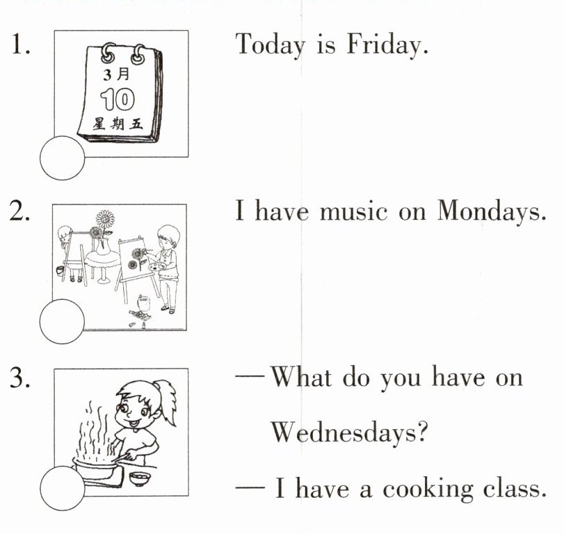 ( )2. 如果你想问“你们星期三上什么课”, 应该说: ______