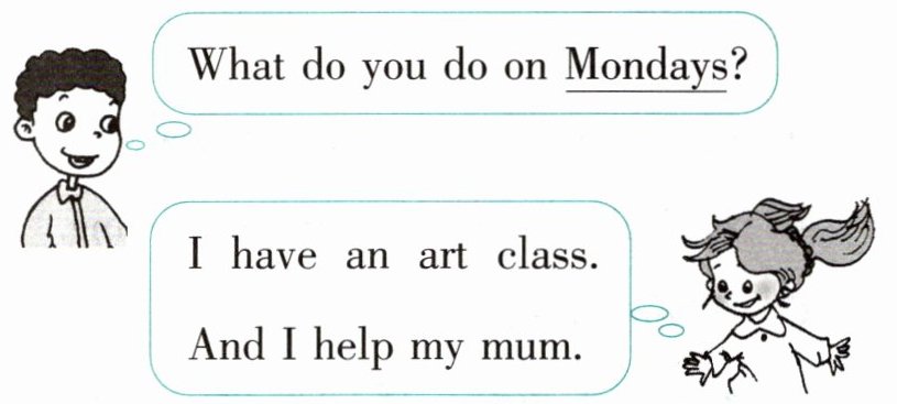 | Wednesday | do homework, have a PE class | sing songs | watch TV | go shopping |