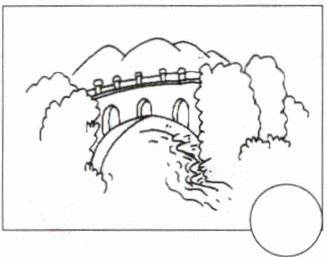 1. forest 2. hills 3. trees 4. house 5. bridge