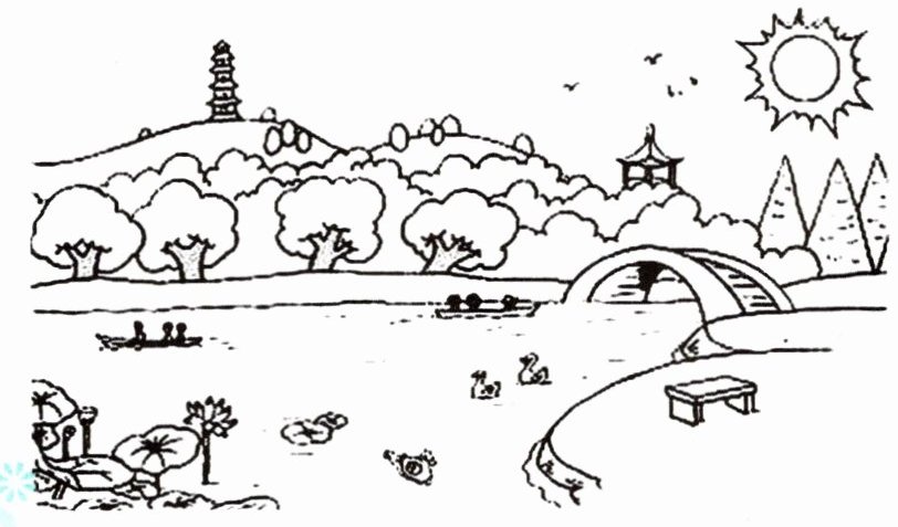 Ⅲ. Draw a nature park, and design an ad. for your nature park. 画一幅自然公园的画,并用 there be 句型为这个公园设计一个广告。