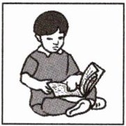 — He ____ reading comic books and playing football.
