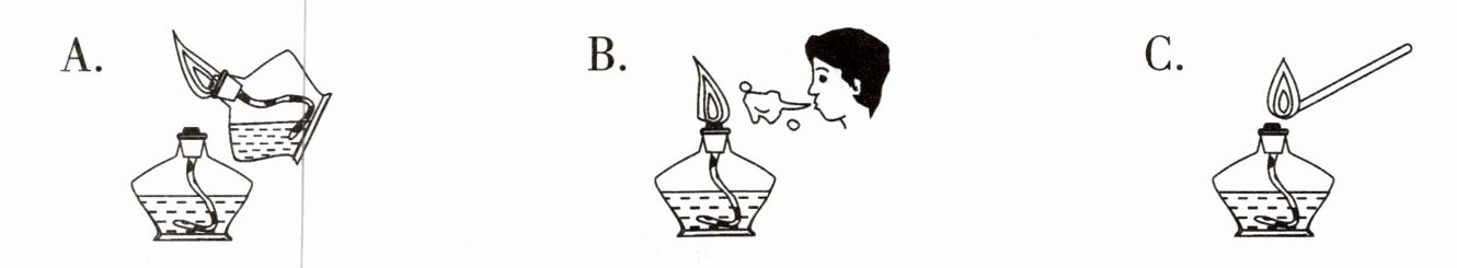 2. 下列图示中,符合使用酒精灯时安全提示的是( )。