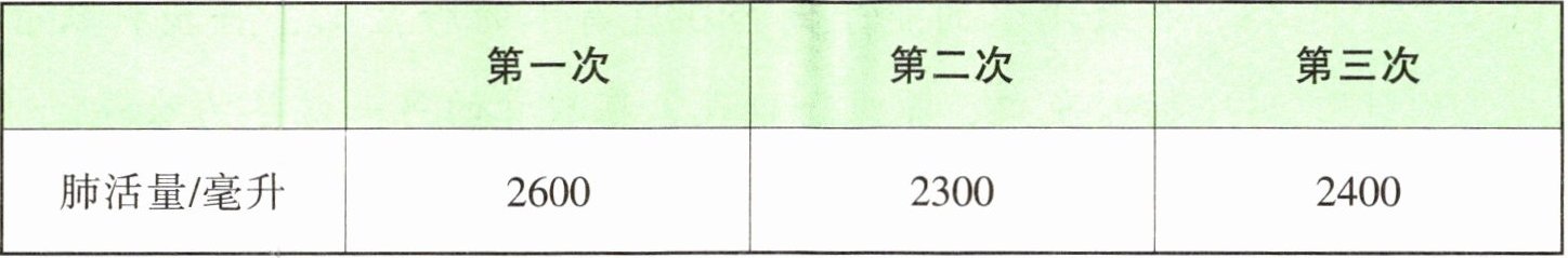 | 肺活量/毫升 | 2600 | 2300 | 2400 |
