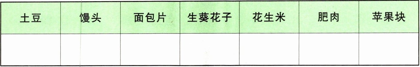 B 组 生葵花子、花生米、肥肉、苹果块、白纸、食用油。