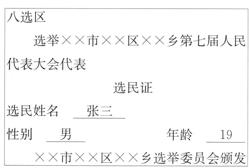 2. 下列关于图中选民证信息的解读,正确的是(