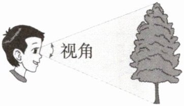 2. 视角:观察物体时,从物体两端(上、下或左、右)引出的光在人眼处所成的夹角。