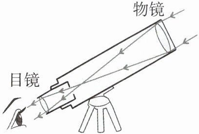 例2 小明取来两个焦距不同的放大镜,分别用一只手握住一个来模拟望远镜,如图所示,他通过两个透镜观察前面的物体,调整两透镜间的距离,直到看清楚前面的物体为止。下列说法正确的是(