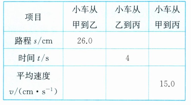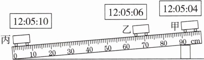 4. 某物理小组利用带有刻度尺的斜面、小车、和电子表测量小车的平均速度,测量过程中小车在甲、乙、丙三个位置所对应的电子表示数如图所示,电子表显示的时间格式是“时:分:秒”。