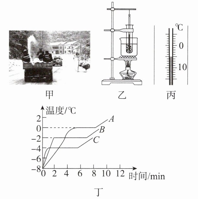 11. 如图甲所示,2023年12月某地迎来了一场大雪,大雪过后路面结冰,环卫工人在公路上撒盐,使路面的冰及时熔化,确保了行人和车辆的出行安全。为了弄清其中缘由,小张做了一组关于冰熔化的实验。