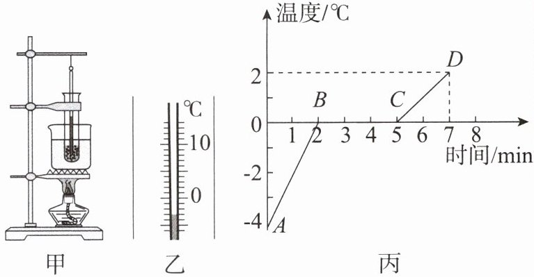 (3)某同学根据记录的数据绘制了冰熔化时温度随时间变化的图像,如图丙所示,由图像可知:冰属于