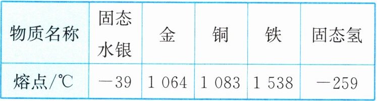 9. 根据表中所列出的几种物质的熔点(标准大气压),下列说法正确的是(