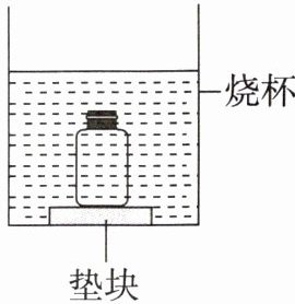 2. 小明将装水的密闭小瓶放在大烧杯里的垫块上方,如图所示,把烧杯放在电冰箱的冷冻室内。过一段时间取出烧杯,发现烧杯中有一大半的水结成了冰,此时小瓶中的水(