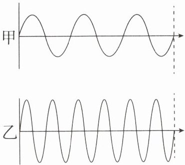;乙波形更密集一些,表明声音的频率较高