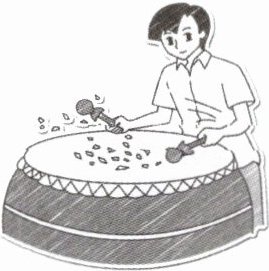 例4 某物理实验小组的同学们在课余时间做了以下实验:如图所示,往鼓面上撒一些纸屑,用较小的力敲鼓,发现纸屑跳起的高度较低,鼓发出的声音的响度较小;用较大的力敲鼓,发现纸屑跳起的高度较高,鼓发出的声音的响度较大。由此可以得出结论:发声体发声时的