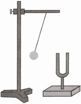 如图所示,用橡胶锤使劲敲击音叉,使正在发声的音叉轻触系在细绳上的乒乓球,观察乒乓球被弹开的