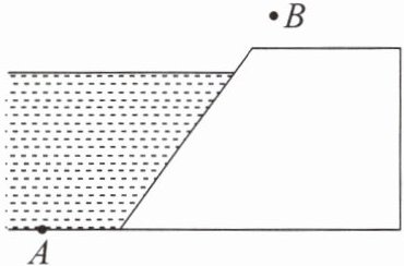 7. 诗句“潭清疑水浅”告诉我们,清澈见底的池底看起来很浅,但实际可能很深,所以不要贸然下水。请在图中作出人眼在$B处看到池底A$点的大致光路图。