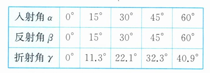 8. 小明在做探究光的折射规律的实验,下图是光从空气斜射入水中时的光路,通过实验还得到如表中所示的数据。