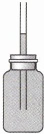 自制的液体温度计如图所示,小瓶里面装满带颜色的水,在小瓶口的橡皮塞上插进一根透明的细管。先后将小瓶放入热水和冷水中,观察水柱的位置。