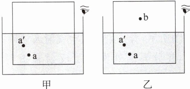 ①将蓝色磁体b吸在水面上方的铁板上(如图乙所示),可观察到磁体b在水中的像,该像的位置与观察者的位置