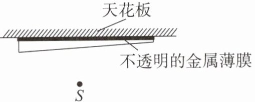 10. 物理实验室天花板下方固定一块厚薄不均匀的玻璃,其背面涂有一层不透明的金属薄膜,玻璃横截面如图所示。小明在玻璃下$S$点固定放置一光源,光源朝着玻璃射出不同角度的光,其中一部分光从空气射入玻璃后,经金属薄膜反射后再从玻璃射入空气。光源射出的光中(
