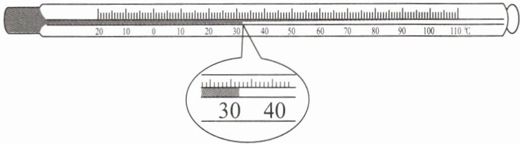 D.该温度计此时的示数为$32\ ^{\circ}C$