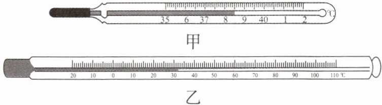 (前两空均选填“甲”或“乙”)。图甲温度计的示数是38.5