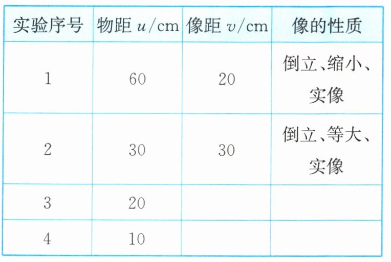 cm。③当物距 $ u = 10 $ cm 时,像的性质是