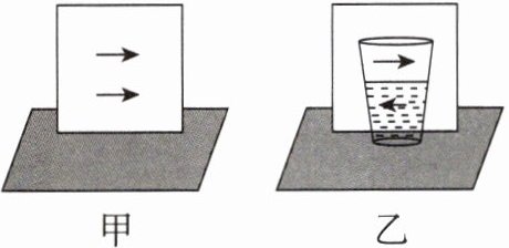10. 如图甲所示,白板上画有两个黑色箭头,用玻璃瓶装半杯水放在白板前,如图乙所示,人眼观察到位于下方的箭头明显发生了变化。下列判断正确的是(