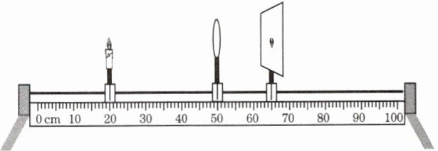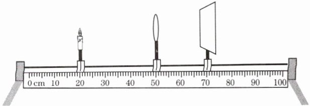 9. (淄博中考)在探究凸透镜成像的规律的实验中,凸透镜的焦距$ f = 12 $ cm,蜡烛、凸透镜、光屏在光具座上的位置如图所示,此时烛焰在光屏上成清晰的像(像未在图中画出)。下列判断正确的是(