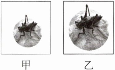 7. 用镜头焦距不变的照相机拍出了蝈蝈的照片如图甲所示,现要拍出如图乙所示的照片,下列操作正确的是(