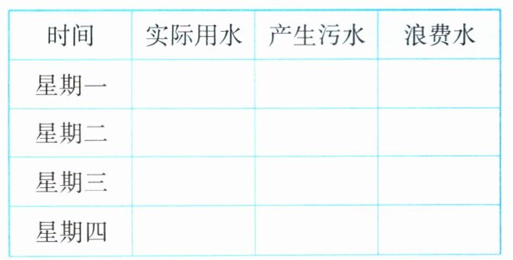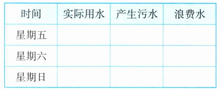 (1)调查你家一周生活用水的大致情况,并填写在下表中(单位:升)。