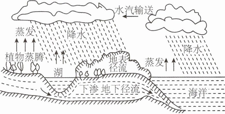 6. (多选)地球表面的70%以上是海洋,但可供人类直接利用的淡水资源不足全部水资源的万分之一,提高节水意识是每个公民的义务和责任。水循环示意图如图所示,下列说法正确的是(