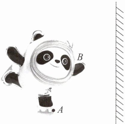 例3 (宜宾中考)冰墩墩是2022年北京冬奥会吉祥物。请在图中画出A点在平面镜中的像,并画出眼睛B通过平面镜“看见”A点的光路图。