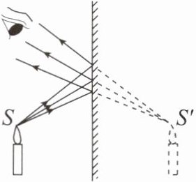 的交点S'处发出的。S'就是S在平面镜中的像。由于平面镜后并不存在光源S',进入眼睛的光并非真正来自S',所以把S'叫作虚像。