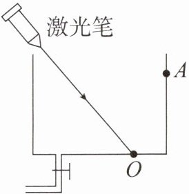 例 1 如图所示,一支固定好的激光笔向空水槽底部固定点 $ O $ 射出一束激光。向水槽内加水使水面上升至 $ A $ 点的过程中,水槽底部光斑将(
