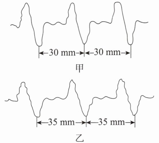 9. 心电图是现代医疗诊断的重要手段之一,医生通过测量心电图上相邻两波峰的时间间隔(即心动周期),就可以计算出1min内心脏跳动的次数(即心率)。甲、乙两人在同一台心电图机上做出的心电图如图所示。医生通过测量后获知甲的心率是每分70次,由此可推断出其图纸移动的速度大小及乙的心率为 (