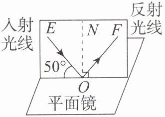 4. 小王同学在家里将一块平面镜放在水平桌面上,再把一张可沿$ON折叠的硬白纸板ENF$竖直地立在平面镜上,以此来探究光的反射定律。通过测量他发现此时入射光线与平面镜成$50^{\circ}$夹角,如图所示,下列说法正确的是(