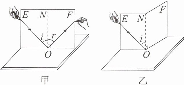 。(3)让光沿图甲中$FO$方向照射到镜面,它会沿着$OE$方向射出。这表明:在光的反射现象中,光路是