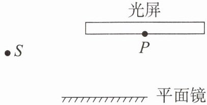 12. 如图所示,从$S$点向平面镜发出一条光线,经平面镜反射后,反射光线到达光屏上的$P$点,请你作出此过程的光路图(保留作图痕迹)。