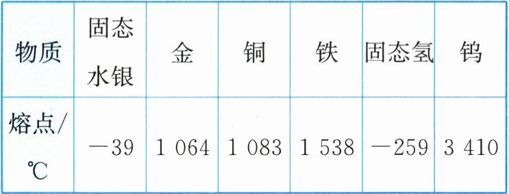 5. 根据表中物质在标准大气压下的熔点,下列说法正确的是(