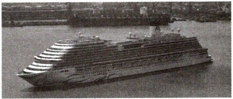 2. 如图所示,“爱达·魔都号”是我国首艘国产大型邮轮,全长 323.6 m,总吨位为 13.55 万吨,有 24 层楼高、2 125 间客房,最多可载乘客 5 246 人。2024 年 1 月 1 日,邮轮从上海吴淞口国际邮轮港启航。一位成年游客从船头以正常步速走到船尾,大约需要(