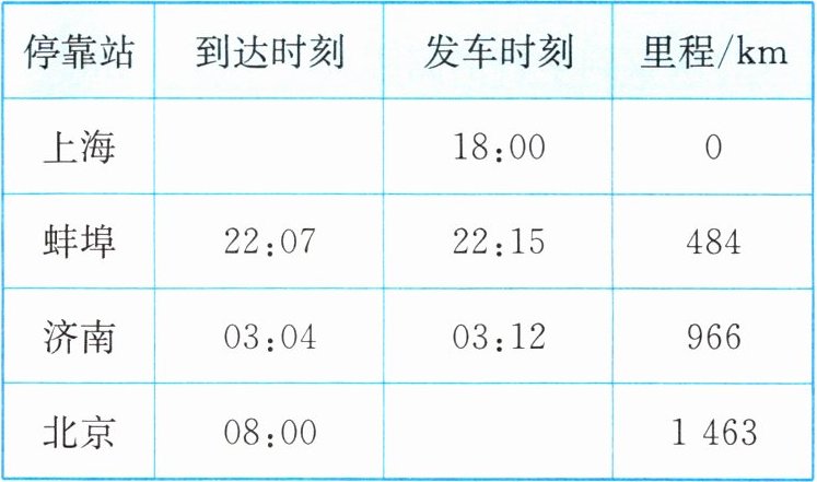 5. 某次列车运行的时刻表如表所示,列车从蚌埠至济南区间段运行所用时间是