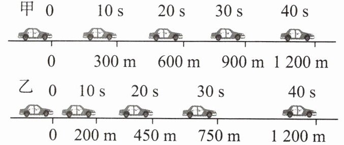 6. 下图是甲、乙两车同时在同一平直公路上行驶时,在相同的时间内通过的路程的示意图。以下分析正确的是(